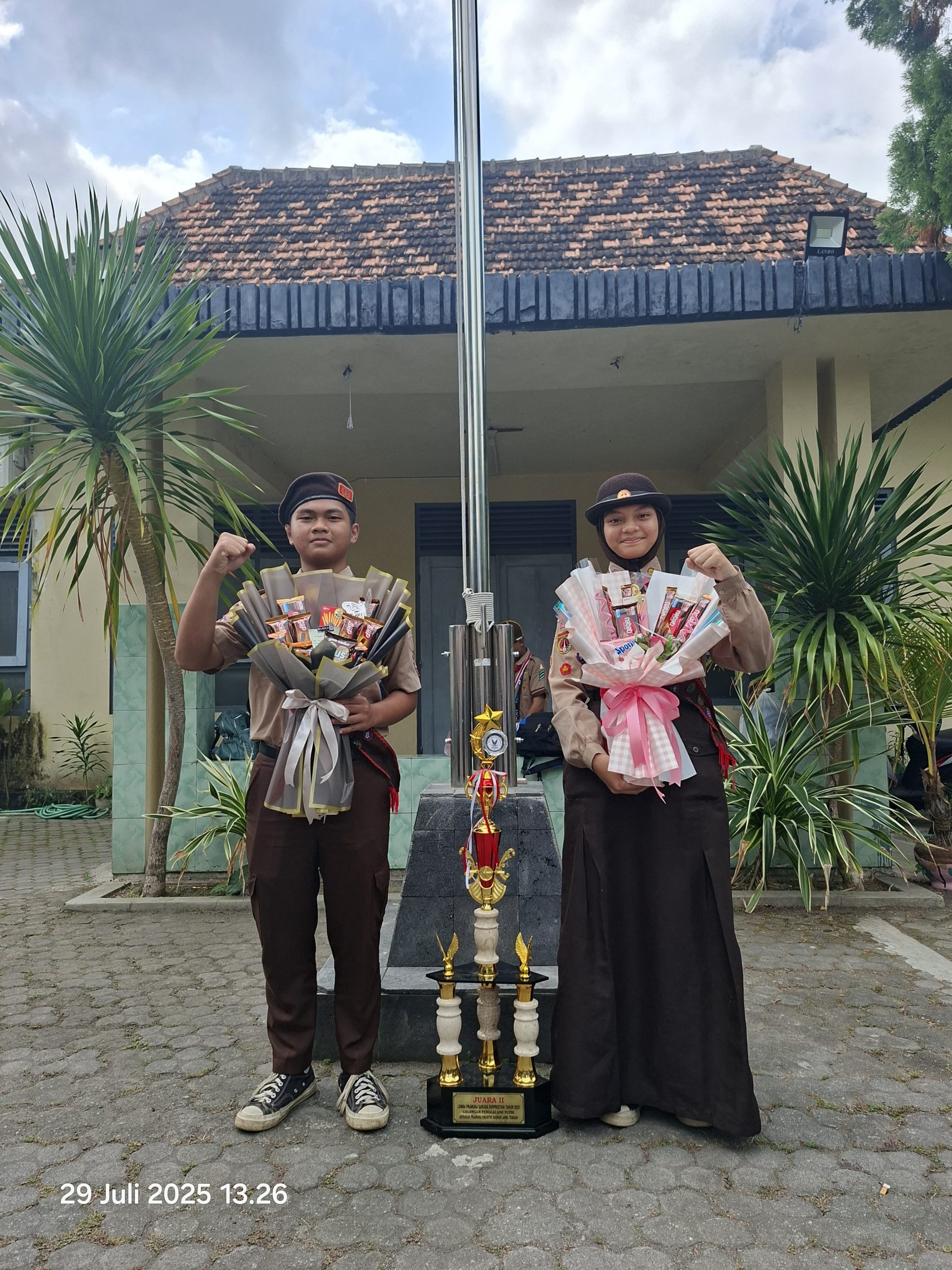 Pramuka MTsN Surakarta 1 (Pramatsa) kembali mencetak jejak prestasi yang menakjubkan di ajang kepramukaan tingkat provinsi. Dua siswa berprestasi, Eryuza Alliyansyah dari kelas 9 Sains 1 dan Syifa Azzahra dari kelas 9 Sains 6, berhasil menunjukkan kemampuan terbaik mereka dalam Lomba Pramuka Garuda Berprestasi, yang juga dikenal dengan Eagle Scout Award (ESA), tingkat Kwarda Jawa Tengah. Ajang lomba bergengsi ini dilaksanakan pada tanggal 26-29 Juli 2025 di Puskepram Candra Birawa, Semarang.