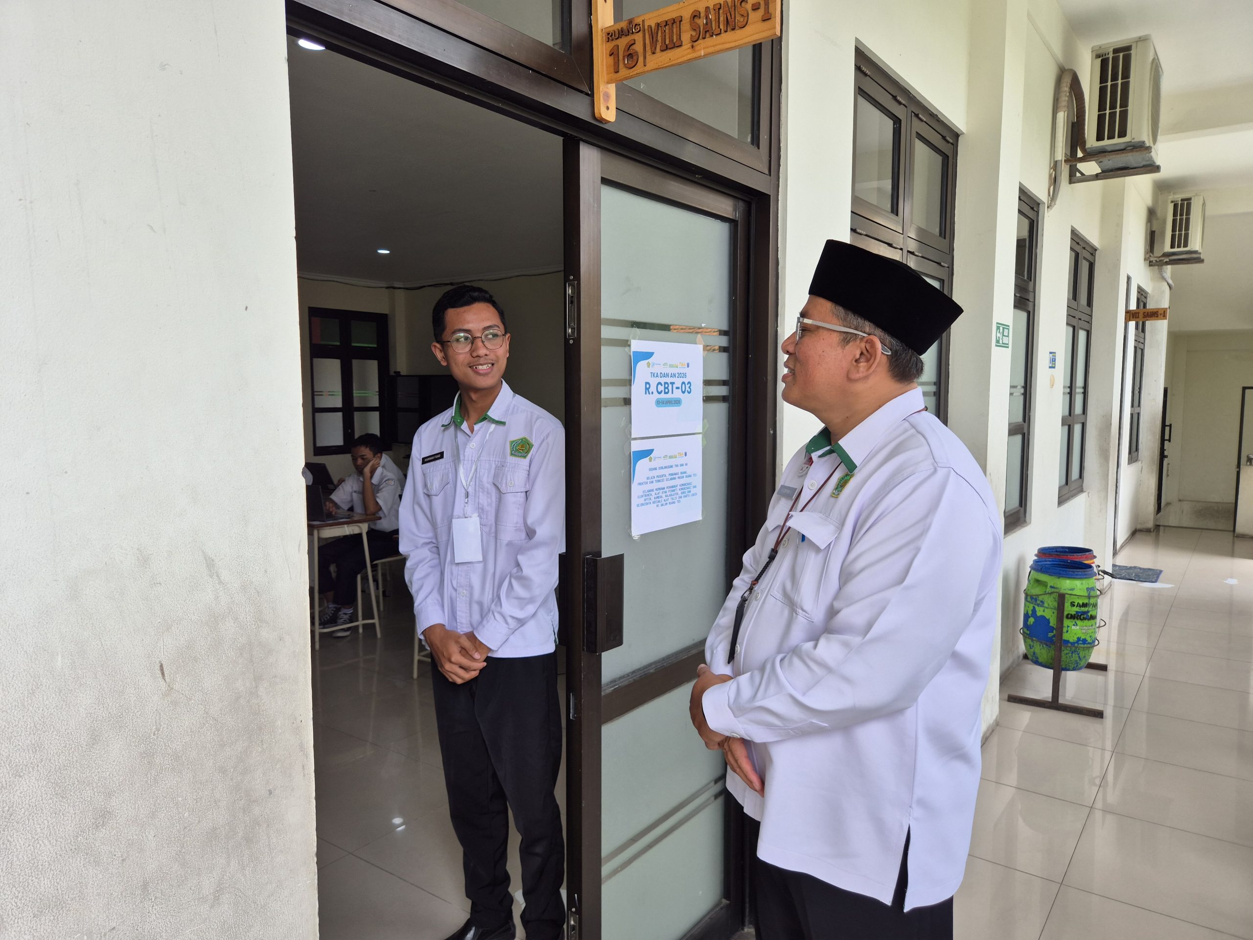 Kelancaran kegiatan tersebut ditinjau langsung oleh Kepala Kantor Kementerian Agama Kota Surakarta, Ahmad Ulin Nurhafsun bersama tim dari Pendidikan Madrasah dalam agenda monitoring dan evaluasi. Dalam kunjungannya, beliau melakukan pengecekan menyeluruh mulai dari sarana prasarana, kehadiran peserta, hingga sistem kepengawasan di setiap ruang. Bapak Ulin menegaskan pentingnya menjaga nilai-nilai moral dalam ujian ini dengan menyampaikan, “Pelaksanaan TKA harus dijaga kejujuran dan juga integritasnya, serta kita pastikan seluruh rangkaian berjalan dengan baik dan lancar agar hasilnya benar-benar valid.”