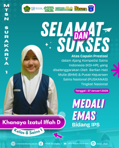 Prestasi ini menjadi bukti nyata kerja keras seluruh civitas akademika, mulai dari siswa, guru, hingga dukungan orang tua. Dengan raihan ini, MTsN 1 Surakarta semakin memperkuat posisinya sebagai madrasah unggulan yang mampu bersaing di tingkat nasional serta siap menorehkan prestasi yang lebih gemilang di masa mendatang.