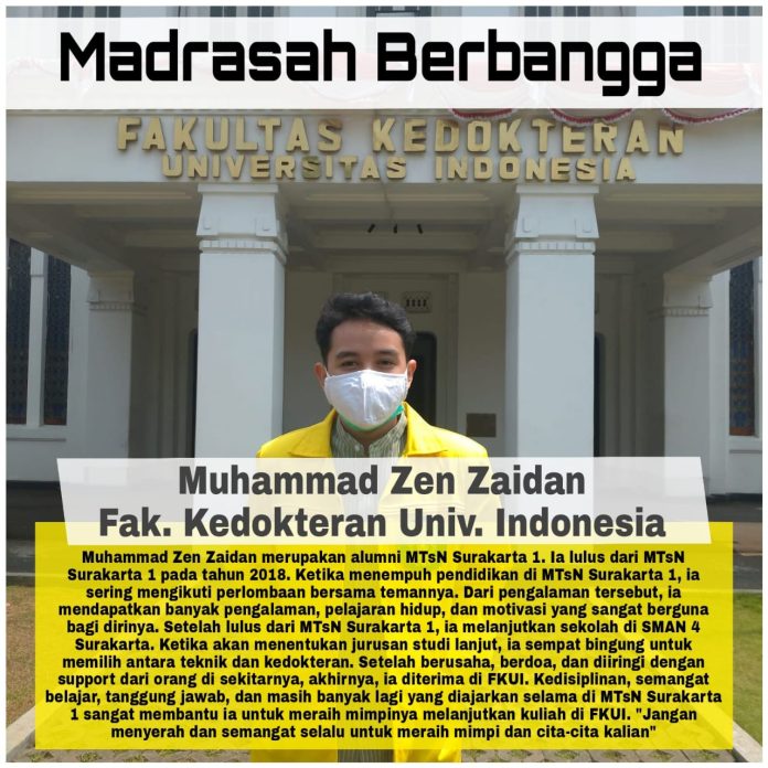 Surakarta-MTsN Surakarta 1 kembali menorehkan prestasi di bidang akademik dengan diterimanya 17 peserta didiknya dalam Seleksi Nasional Peserta Didik Baru (SPNDB) MAN Insan Cendekia, MAN Program Keagamaan, dan MA Negeri Kejuruan. Seleksi tersebut diumumkan pada Rabu (16/03/2022) Empat peserta didik diterima di MAN IC Serpong, 8 di MAN Program Keagamaan, dan 5 diterima sebagai cadangan di MAN Program Keagamaan.