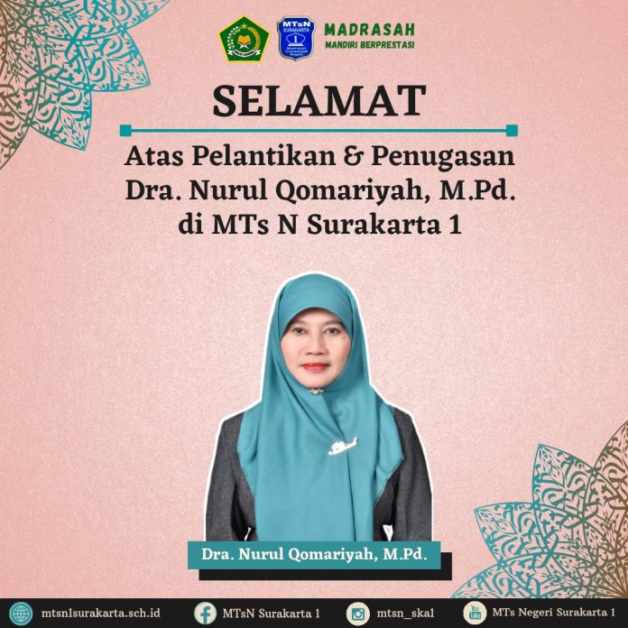 Atas Pelantikan dan Penugasan Dra. Nurul Qomariyah,M.Pd. di MTsN Surakarta 1