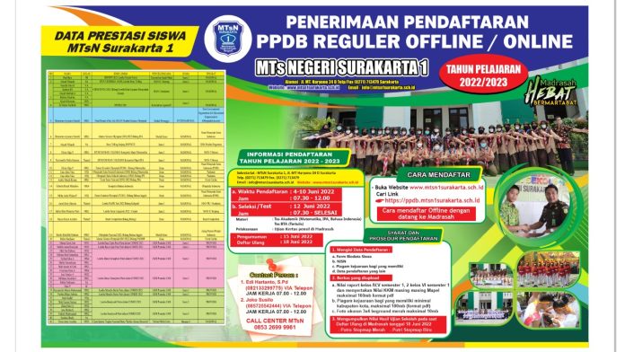 PENERIMAAN PENDAFTARAN PPDB REGULER OFFLINE/ONLINE MTsN SURAKARTA 1 TAHUN PELAJARAN 2022/2023