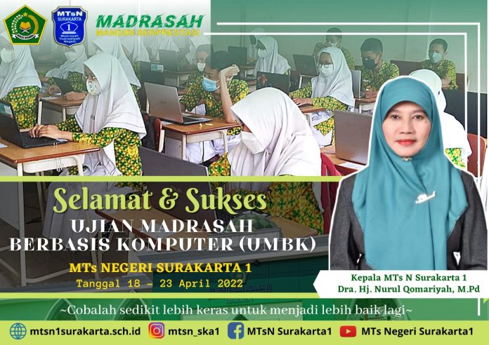 Selamat dan Sukses Ujian Madrasah Berbasis Komputer (UMBK ) MTsN Surakarta 1