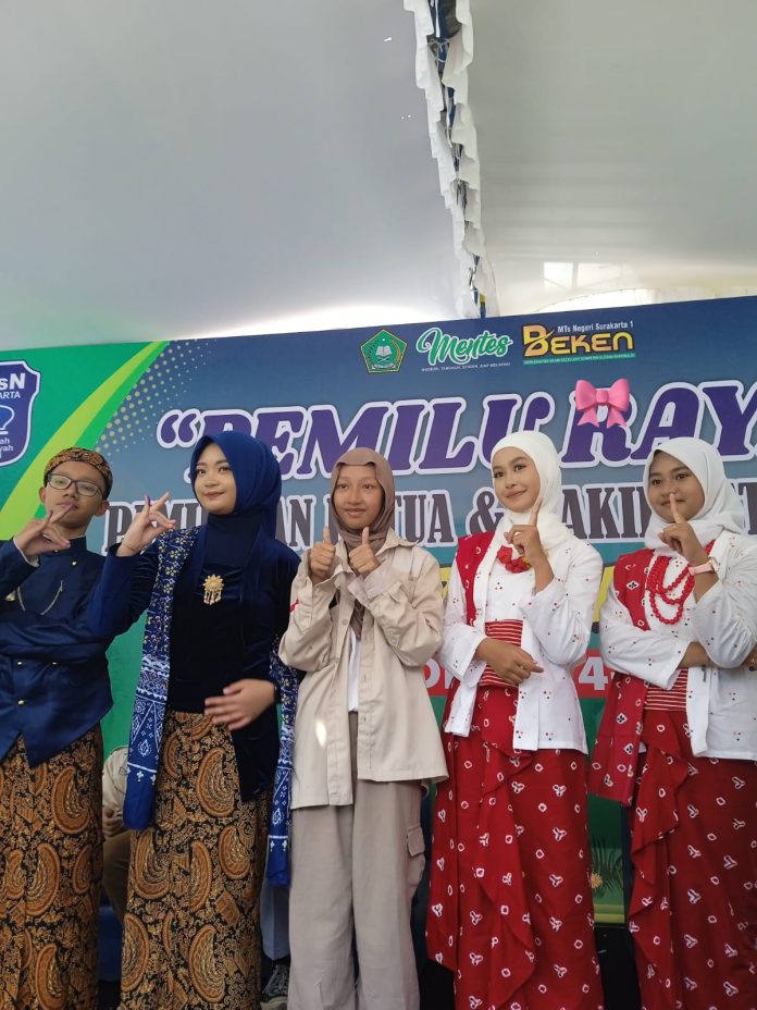MTsN Surakarta 1 menggelar Pemilu Raya Ketua dan Wakil Ketua OSIM Periode 2024-2025 pada Sabtu (10/08/2 024). Pemilu Raya tahun ini diikuti 2 pasangan calon (paslon) Ketua dan Calon Wakil Ketua OSIM . Paslon 1 yaitu Diera Valeska (8S3) dan Farfalla Febriani (8A). Paslon 2 yaitu Radeya (8S3) dan Fadhil (8S1). Kegiatan ini diikuti oleh seluruh siswa MTsN Surakarta 1 dan berlangsung meriah. Hal tersebut dikarenakan dalam waktu bersamaan digelar Pentas Seni (Pensi). Pensi ini diikuti oleh beberapa kelas dan bersifat tidak wajib. Hampir semua kelas memberikan penampilan terbaiknya. Pensi ini juga merupakan ajang unjuk bakat dan kreativitas. Sebelum Pemilu Raya digelar, sepekan sebelumnya siswa MTsN Surakarta 1 giat berlatih di sela jam pelajaran atau setelah jam pulang. Hari ini seluruh penampilan pensi mendapat apresiasi yang luar biasa meriah dari penonton. Hal tersebut membuat Pemilu Raya yang dilaksanakan bergelombang setiap kelas tidak terasa membosankan.