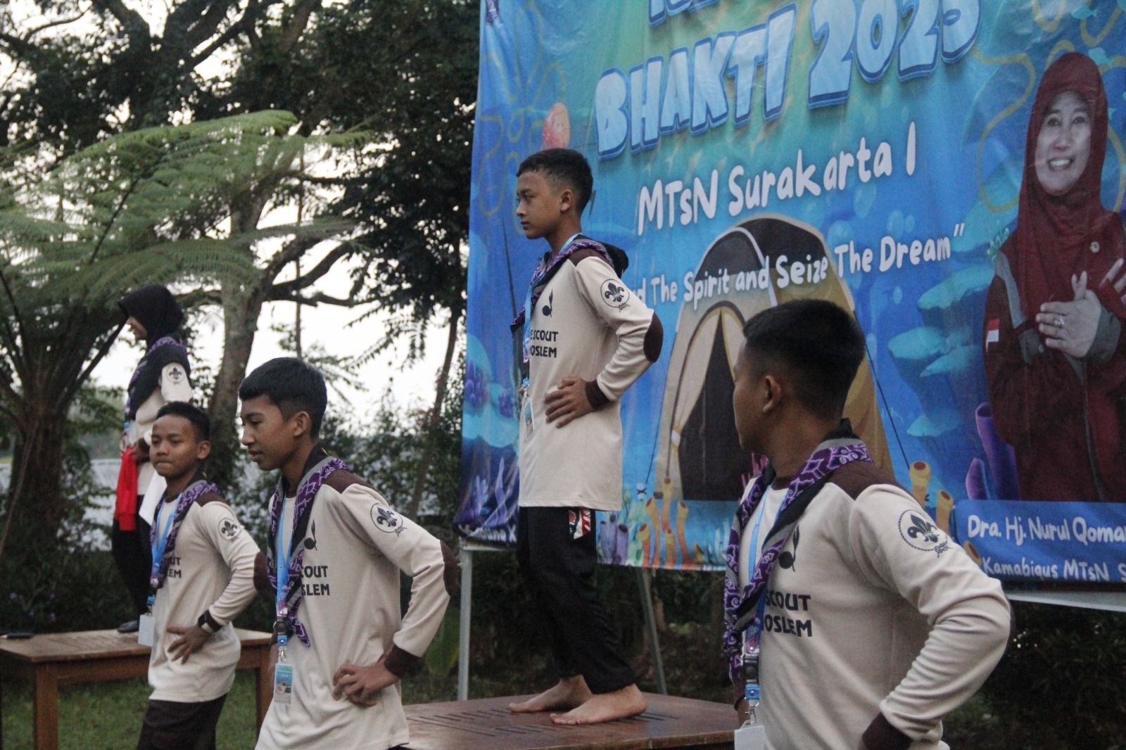 Pramuka MTsN Surakarta 1 (Pramatsa) menggelar Kemah Bakti pada Rabu – Kamis (07-08/05/2025) di Agrowisata Kampung Karet, Ngargoyoso, Karanganyar diikuti oleh seluruh siswa kelas 7. Kemah Bakti ini merupakan kegiatan tahunan yang bertujuan menumbuhkan jiwa sosial, kebersamaan dan kepedulian terhadap sesama serta dapat melatih kemadirian dan tanggung jawab. Kegiatan diawali dengan upacara pembukaan yang berlangsung dengan tertib dan khidmat pada pukul 09.40 – selesai di lapangan. Kemah Bakti dibuka oleh Kepala Madrasah. Dalam sambutannya Kepala Madrasah, Nurul Qomariyah menyampaikan pada peserta kemah untuk mengikuti kegiatan dengan baik. “Silahkan ikuti seluruh rangkaian kegiatan kemah bakti ini dengan baik dan disiplin serta penuh tanggung jawab. Semoga adik- adik semua menjadi pramuka- pramuka sejati yang tangguh, “tutur Nurul Qomariyah. Upacara pembukaan diakhiri dengan sesi foto bersama setiap kelas.